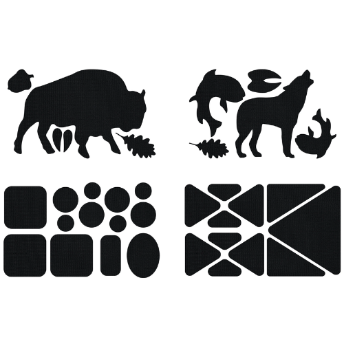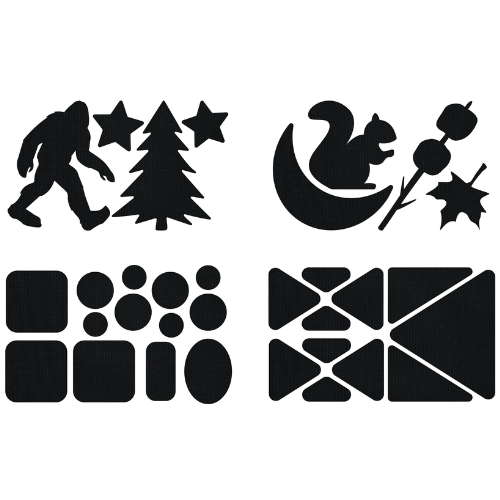 - Camping. Wildlife. and Outdoor - four 3 x 5 black nylon strips in a variety of shapes and sizes